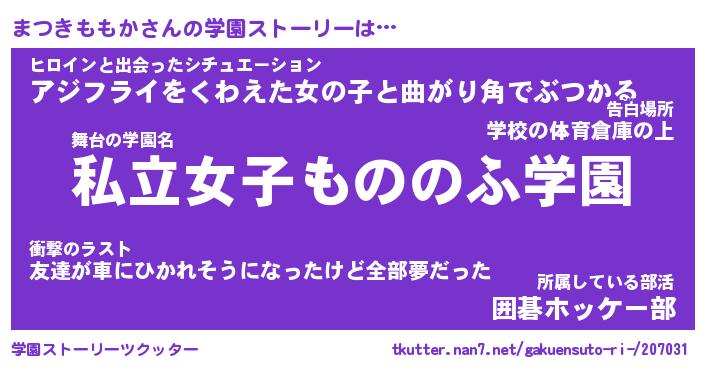 ヒーロー風カッコイイあだ名 | 『スーパーマツキモモカ』『黄金騎士マツ』 |