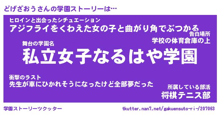 | 告白場所 先生の家の上 …「ふぃぎゅこ」 | 2月17日 06:24 |