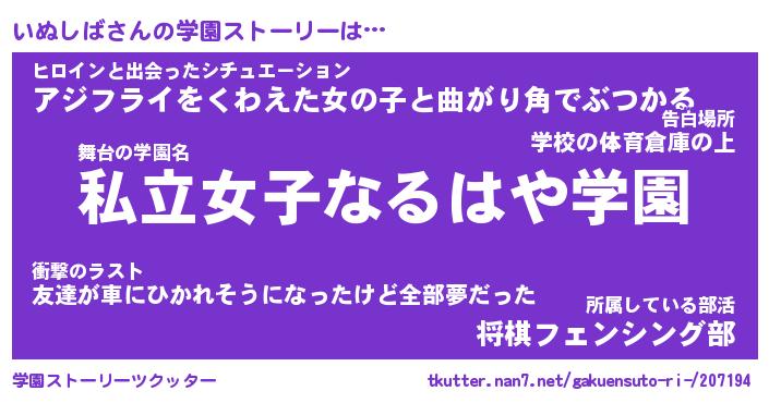 女子向けラノベタイトル風あだ名 | 『いぬしば姫と円卓の騎士』 |