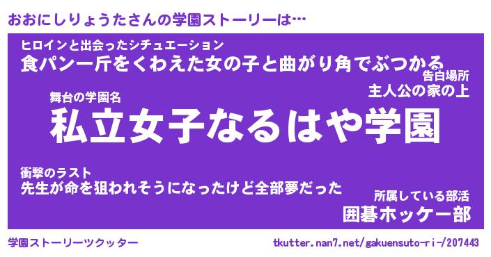 | 告白場所 先生の家の上 …「ふぃぎゅこ」 | 2月17日 06:24 |