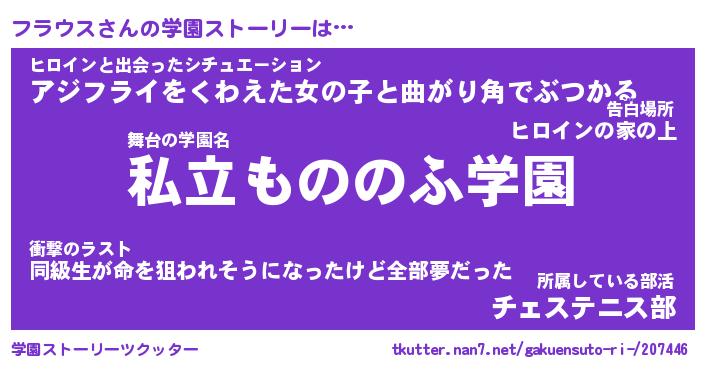 | 意味不明あだ名 | 『ペロリンフラウス』『永久保存フラウス』 |
