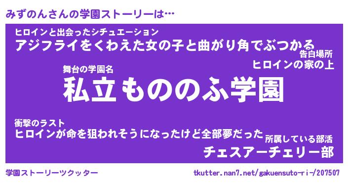 | ファンタジー風あだ名 | 『ミズフェル』『エターナルミズノンー』 |