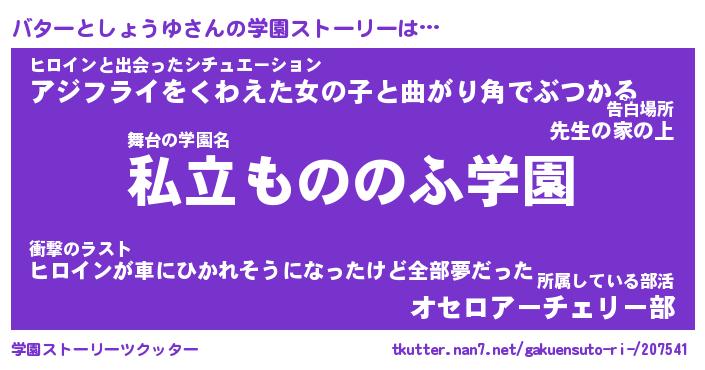 | 男性向けラノベタイトル風あだ名 | 『バターとしょうゆの憂鬱』 |