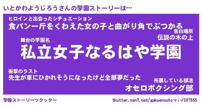 | 伝説のあだ名 | 『封印されしスナイパーいとかわようじろう』 |