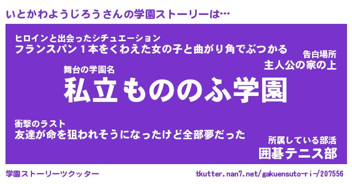 | 男性向けラノベタイトル風あだ名 | 『いとかわようじろうの憂鬱』 |