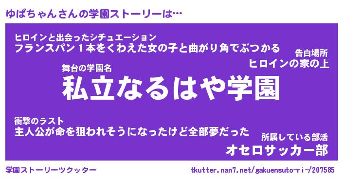 | 女子向けラノベタイトル風あだ名 | 『(仮)ゆばちゃんのやんごとなき事情』 |