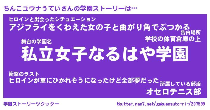 | 料理風あだ名 | 『ネギたっぷりちんこユウナうていの南蛮漬け』 |