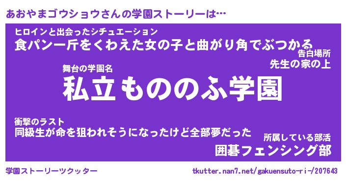 | 告白場所 先生の家の上 …「ふぃぎゅこ」 | 2月17日 06:24 |