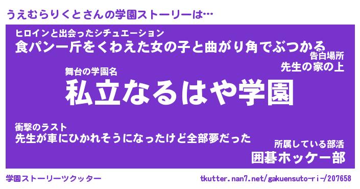 | 告白場所 先生の家の上 …「ふぃぎゅこ」 | 2月17日 06:24 |