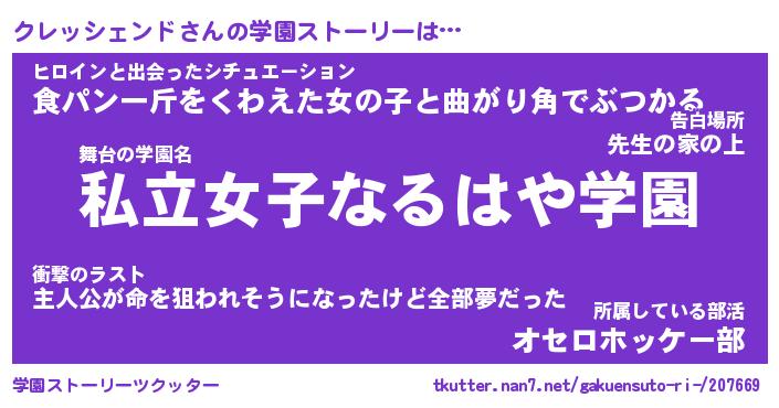 | 男性向けラノベタイトル風あだ名 | 『クレッシェンドアートオンライン』 |