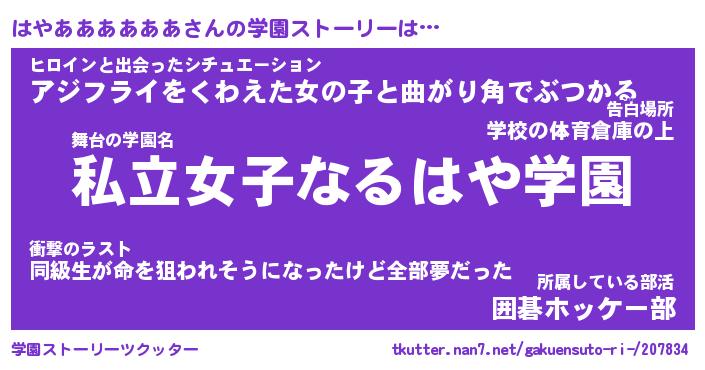 | 男性向けラノベタイトル風あだ名 | 『ハヤアアアアアアアートオンライン』 |