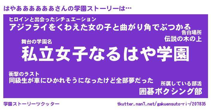 | 告白場所 先生の家の上 …「ふぃぎゅこ」 | 2月17日 06:24 |