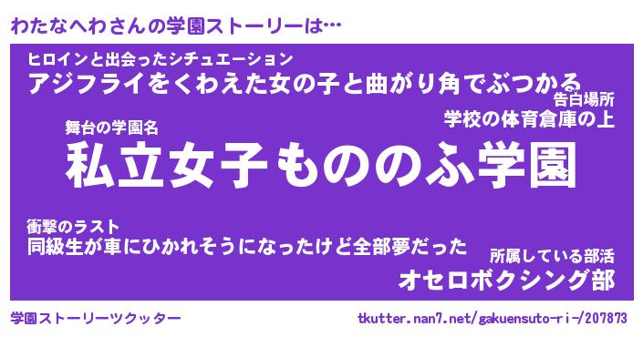 | 男性向けラノベタイトル風あだ名 | 『ワタナヘワアートオンライン』 |