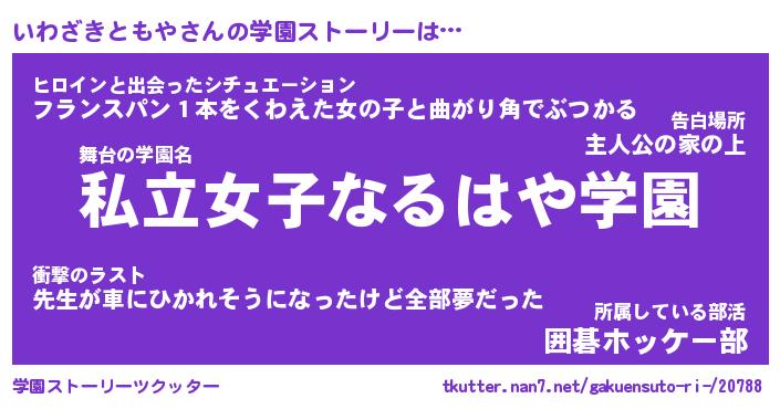 | 伝説のあだ名 | 『封印されしスナイパーいわざきともや』 |