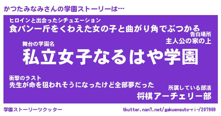 | 男性向けラノベタイトル風あだ名 | 『カツタミナミアートオンライン』 |