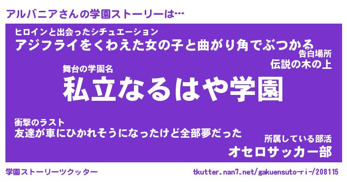 | 胡散臭い通販商品みたいなあだ名 | 『必ず成功する霊験あらたかなお札…その名も「アルバニア」』 |