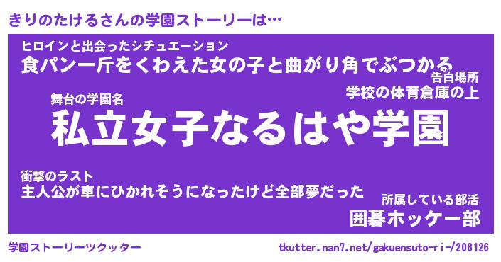 | 告白場所 先生の家の上 …「ふぃぎゅこ」 | 2月17日 06:24 |