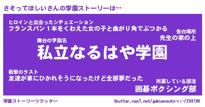 | 告白場所 先生の家の上 …「ふぃぎゅこ」 | 2月17日 06:24 |