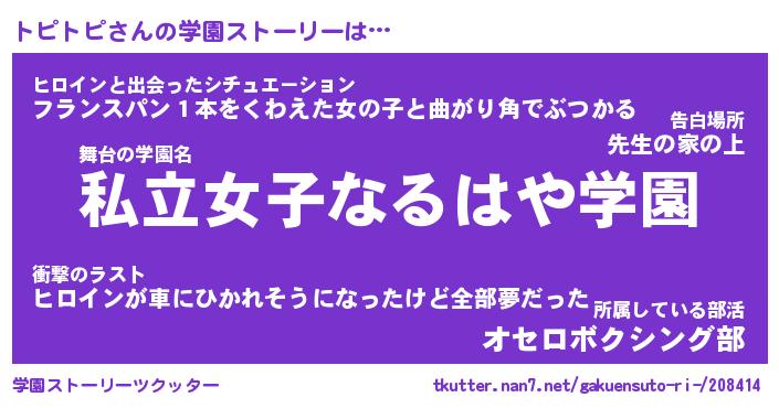 | ファンタジー風あだ名 | 『トピフェル』『エターナルトピトピー』 |