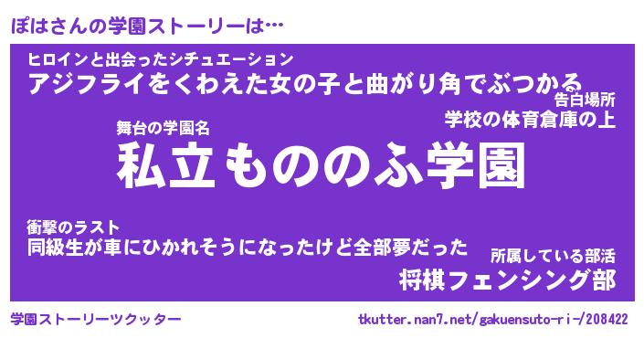 | 告白場所 先生の家の上 …「ふぃぎゅこ」 | 2月17日 06:24 |