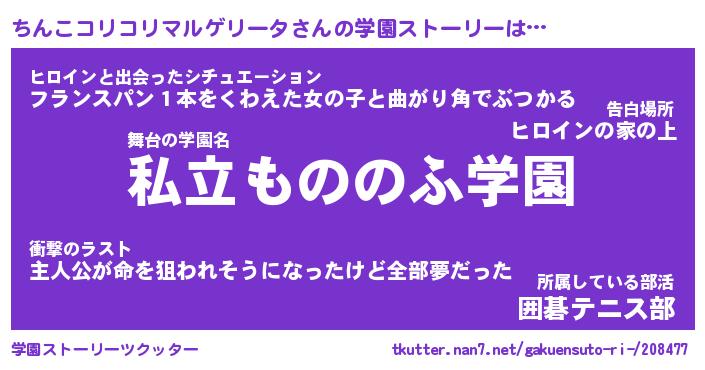 | 女子向けラノベタイトル風あだ名 | 『ちんこコリコリマルゲリータ姫と円卓の騎士』 |