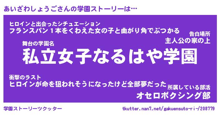 | 女子向けラノベタイトル風あだ名 | 『あいざわしょうご姫と円卓の騎士』 |