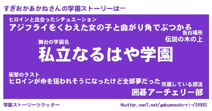 | 女子向けラノベタイトル風あだ名 | 『(仮)すぎおかあかねのやんごとなき事情』 |
