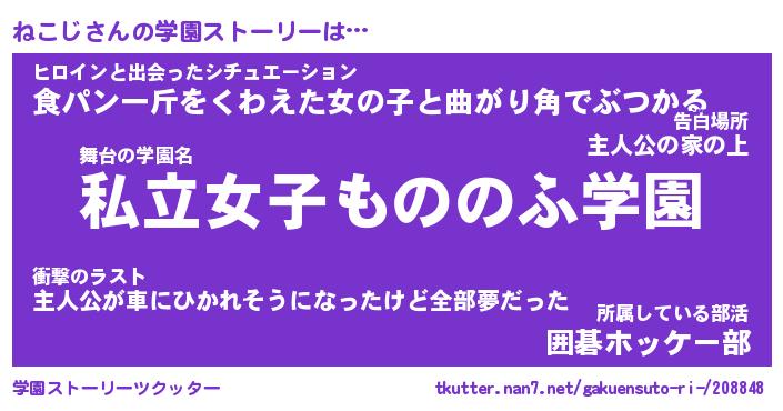 | ヘコむあだ名 | 『ねこにー』『牛乳』『ねこっちょ』 |
