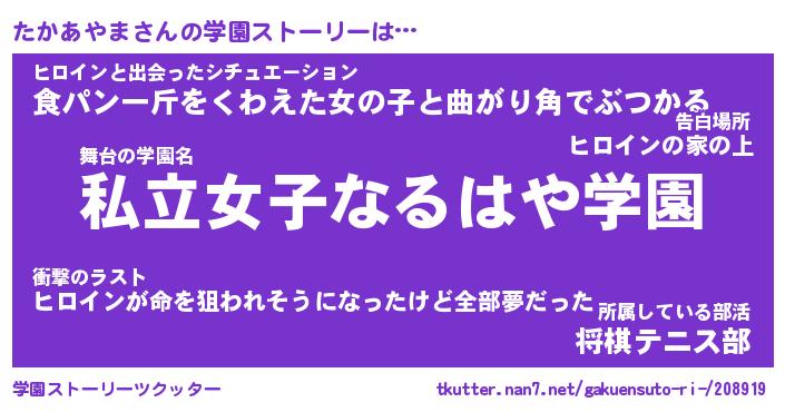 | 肩書あだ名 | 『たかあやま御曹司』『たかあやま大統領』 |
