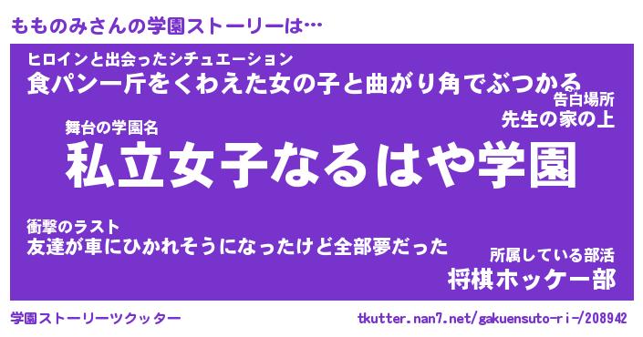 | 意味不明あだ名 | 『ペロリンもものみ』『永久保存もものみ』 |