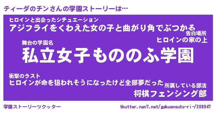 | 男性向けラノベタイトル風あだ名 | 『ティーダノチンアートオンライン』 |
