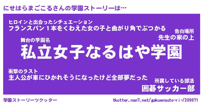 | 告白場所 先生の家の上 …「ふぃぎゅこ」 | 2月17日 06:24 |