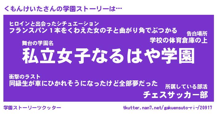 | 男性向けラノベタイトル風あだ名 | 『クモンケイタアートオンライン』 |