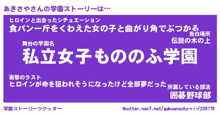 | 伝説のあだ名 | 『封印されし竜騎士あきさや』 |