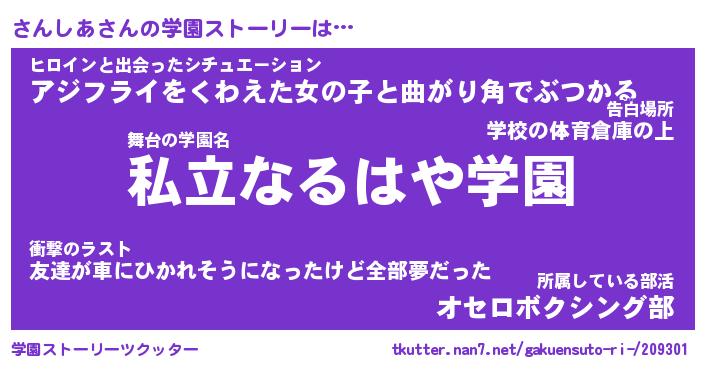 | 胡散臭い通販商品みたいなあだ名 | 『必ず成功する水晶球…その名も「さんしあ」』 |