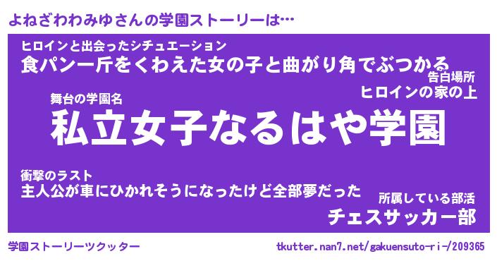 | 女子向けラノベタイトル風あだ名 | 『よねざわわみゆ姫と円卓の騎士』 |