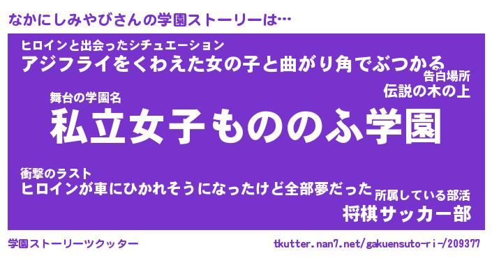 | 男性向けラノベタイトル風あだ名 | 『ナカニシミヤビアートオンライン』 |