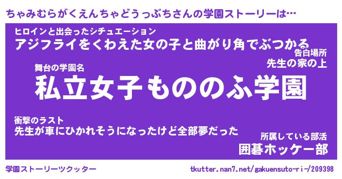 | 恥ずかしいあだ名 | 『プリティーちゃみむらがくえんちゃどうっぶち』 |