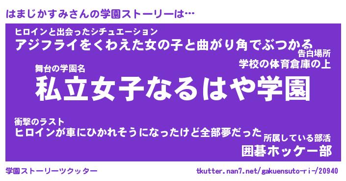 | 伝説のあだ名 | 『封印されしスナイパーはまじかすみ』 |