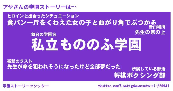 | 男性向けラノベタイトル風あだ名 | 『アヤの憂鬱』『ノーゲーム・ノーアヤ』 |