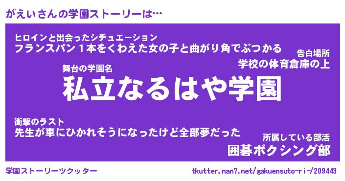 | 告白場所 先生の家の上 …「ふぃぎゅこ」 | 2月17日 06:24 |