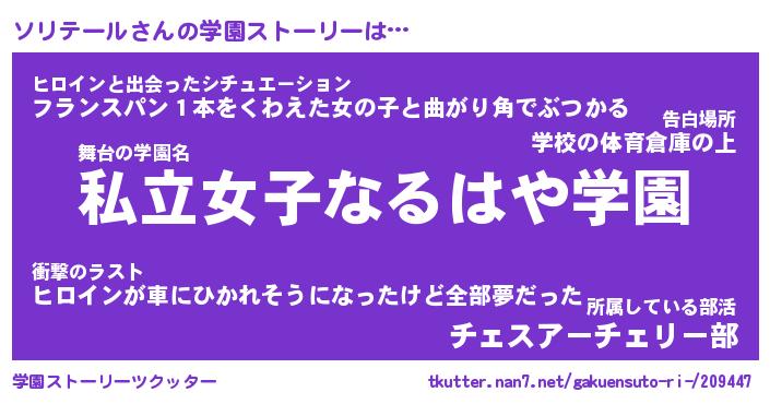 | 女子向けラノベタイトル風あだ名 | 『ソリテール姫と円卓の騎士』 |