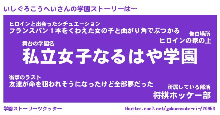 | 女子向けラノベタイトル風あだ名 | 『いしぐろこうへい姫と円卓の騎士』 |