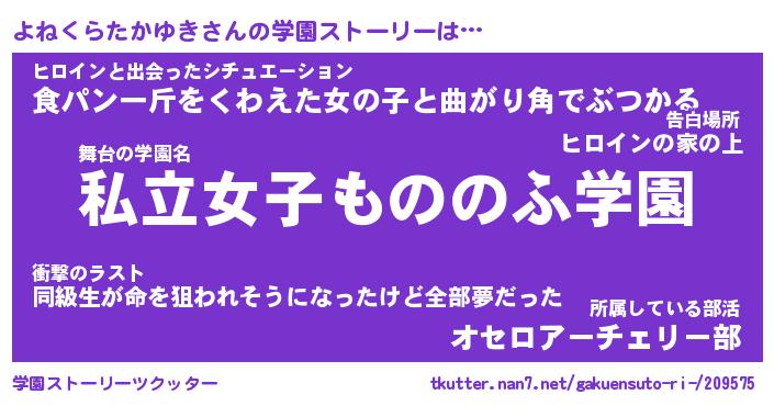 | 女子向けラノベタイトル風あだ名 | 『誰かこのよねくらたかゆきを説明してください! ~契約から始まるウェディング~』 |