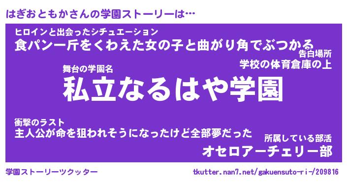| 肩書あだ名 | 『はぎおともか御曹司』 |