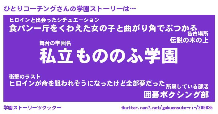 | 男性向けラノベタイトル風あだ名 | 『ひとりコーチングの憂鬱』 |