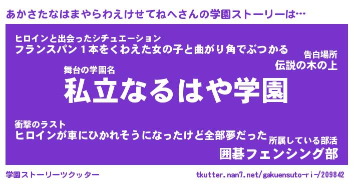 | 告白場所 先生の家の上 …「ふぃぎゅこ」 | 2月17日 06:24 |