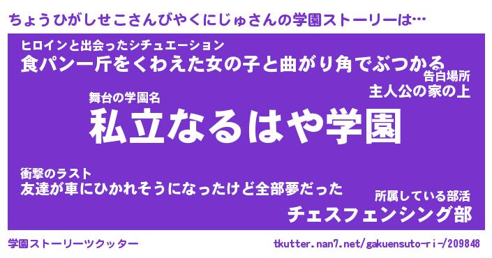 | 告白場所 先生の家の上 …「ふぃぎゅこ」 | 2月17日 06:24 |
