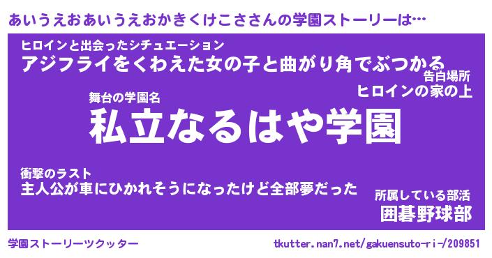 | 告白場所 先生の家の上 …「ふぃぎゅこ」 | 2月17日 06:24 |