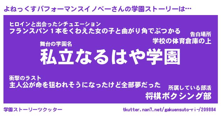 | 女子向けラノベタイトル風あだ名 | 『(仮)よねっくすパフォーマンスイノベーのやんごとなき事情』 |